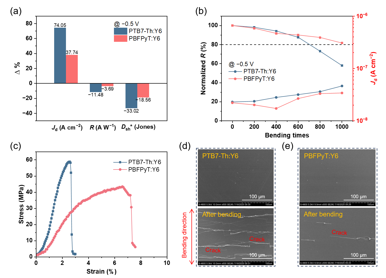 青岛能源所先进有机功能材料与器件研究组发展了一类新型聚合物给体材料,并深入研究了分子结构与堆积形貌之间的关系,从而大幅提升柔性近红外有机光电探测器的探测性能和机械稳定性。2025-11-14