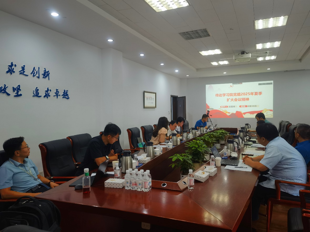 吕雪峰领学了中国科学院2025年夏季党组扩大会议精神,并部署研究所下半年重点工作。会议指出,夏季党组扩大会议是在全院推进改革创新发展关键阶段召开的重要会议,为研究所下半年及未来一段时期的工作指明了方向。此前,研究所已在8月28日召开的部门联席会上,向管理部门干部初步传达了会议精神,此次中心组(扩大)学习是对会议精神的再深化、再落实。
