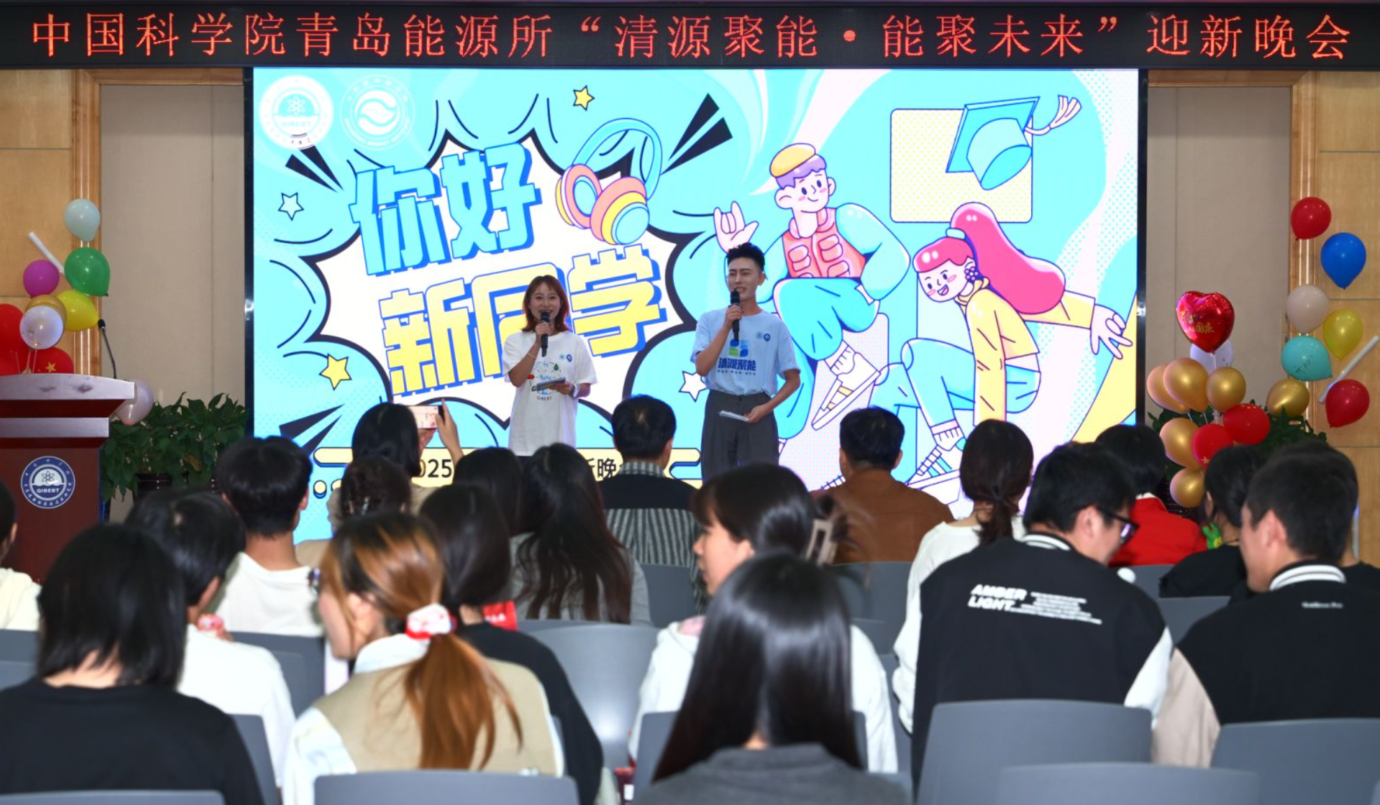为迎接研究所新生力量,并庆祝中秋、国庆双节,9月29日晚,青岛能源所“清源聚能·能聚未来”迎新晚会在新源路园区214报告厅隆重举行。导师代表、辅导员代表、研究生处全体教育干部、研究生、留学生、职工及家属等近200人欢聚一堂、喜迎新生。