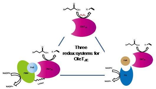 图1:Hydrogen peroxide-independent production of α-alkenes by OleTJE P450 fatty acid decarboxylase