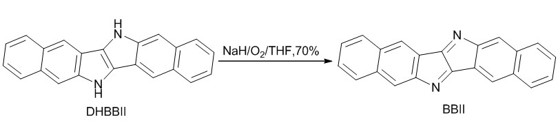 平面型反芳香性稠环化合物往往缺乏足够的稳定性,需要连接适当的取代基团来增加其稳定性。研究所生物基材料重点实验室万晓波研究团队在研究中发现,一种以二氢吡咯并[3,2-b]吡咯为核心结构的芳香性稠环化合物(DHBBII)可以在温和条件下被氧化生成反芳香性的稠环化合物(BBII)。该化合物不需要取代基的稳定作用即能表现出相当稳定性,在250℃以上才发生分解。此类反芳香性稠环化合物是一种电子受体,有望成为新型场效应晶体管材料。