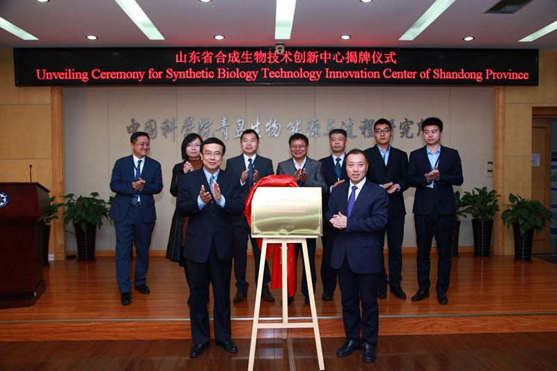 开幕式上,王同庆和冯埃生为山东省七家单位合作共建的“山东省合成生物技术创新中心”筹建揭牌。山东省是传统化工、传统发酵、传统医药、传统农业大省,面临着传统产业转型升级和新兴产业培育等产业发展重大难题。建设合成生物技术创新中心,将有望破解山东省经济社会发展所面临的资源、能源、健康、环境等重大挑战,支撑山东省新旧动能转换重大工程实施和经济社会发展走在前列。青岛能源所作为建设依托单位,将进一步加大研发和产业化合作力度,推动省合成生物技术创新中心的建设。