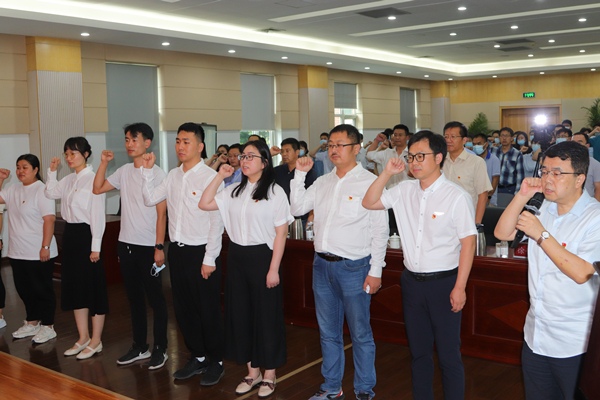 大会在雄壮的国歌声中开幕。首先,在党委书记彭辉同志带领下,8名预备党员面向党旗进行了庄严的入党宣誓仪式,其他党员同志们重温了入党誓词。