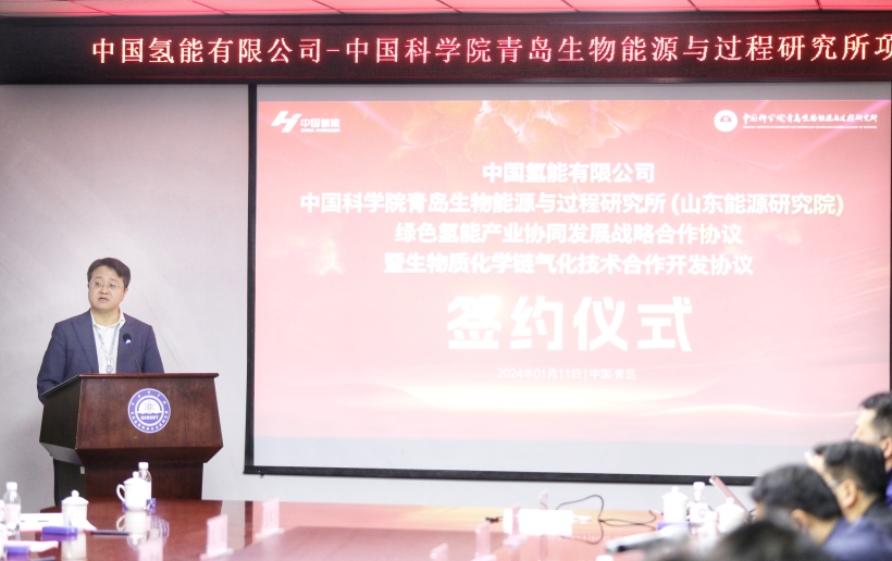 1月11日,青岛能源所与中国氢能有限公司共同签署“绿色氢能产业协同发展战略合作协议暨生物质化学链气化技术合作开发协议”。双方将充分发挥各自在人才、科技、产业和资本等方面的优势,合作开展生物质化学链气化技术中试、工业化示范和商业推广工作,共同推动青岛市、山东省及国家绿色氢能和液体燃料产业的发展,为实现我国双碳战略目标助力。